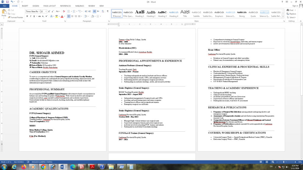 Dr Shoib Cv